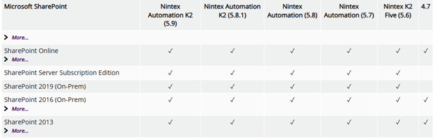 As a reminder, the full support matrix can be found here: Nintex K2 Product Compatibility